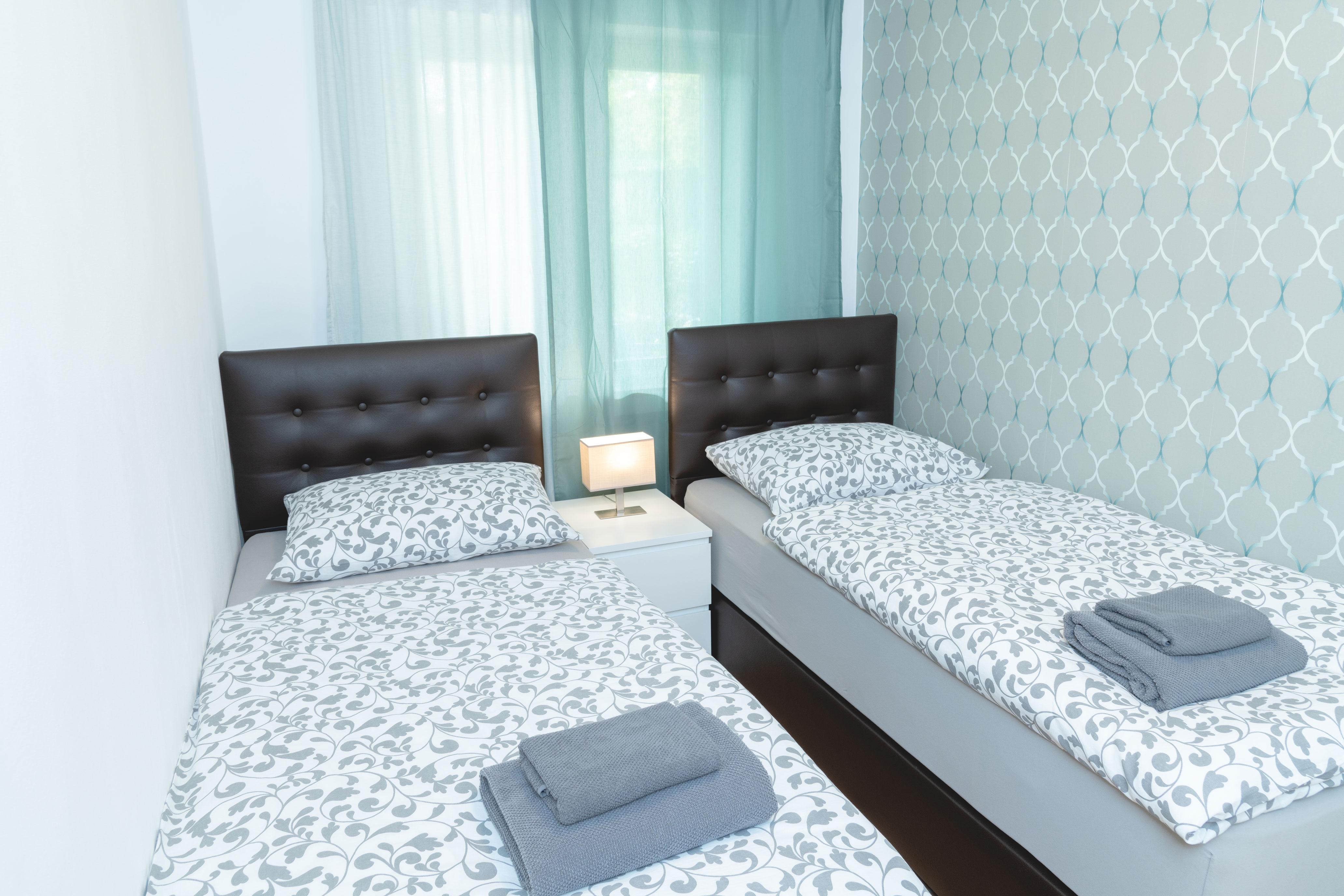 Our apartment "Helena" is equipped with 6 single comfort beds. All necessary electrical devices, e.g. Coffee machine, kettle, flat screen TV, microwave, washing machine, dishwasher, stove, oven, refrigerator and much more are available. All cooking utensils, dishes and cutlery are also included.